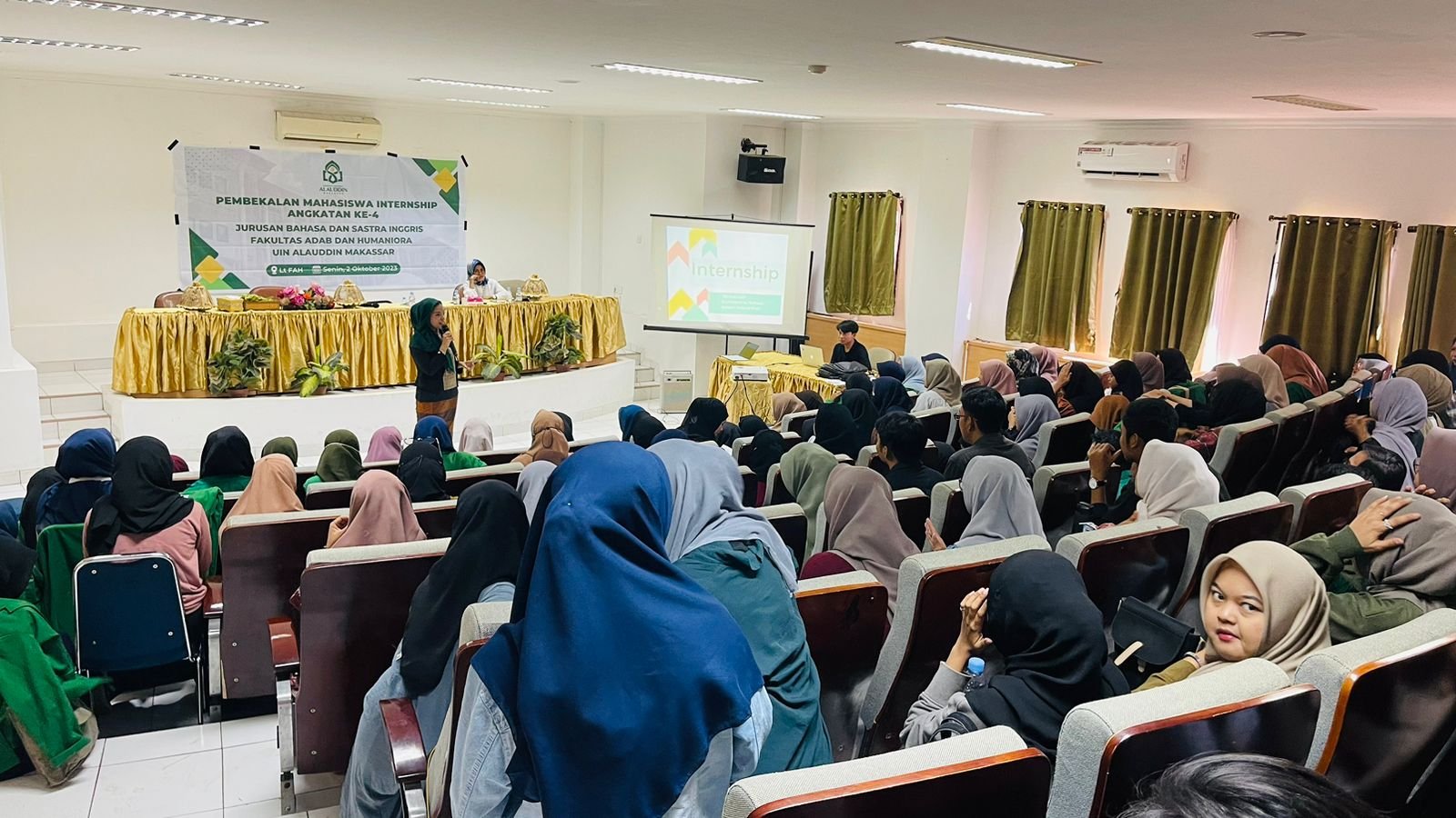 Kelaster – Makassar: Mahasiswa Jurusan Bahasa & Sastra Inggris (BSI) Fakultas Adab dan Humaniora (FAH) Universitas Islam Negeri Alauddin Makassar (UINAM) mengikuti pembekalan dan pelepasan magang periode 2023 di Lecture Theater (LT) FAH, Kabupaten Gowa, Senin (2/10/2023).