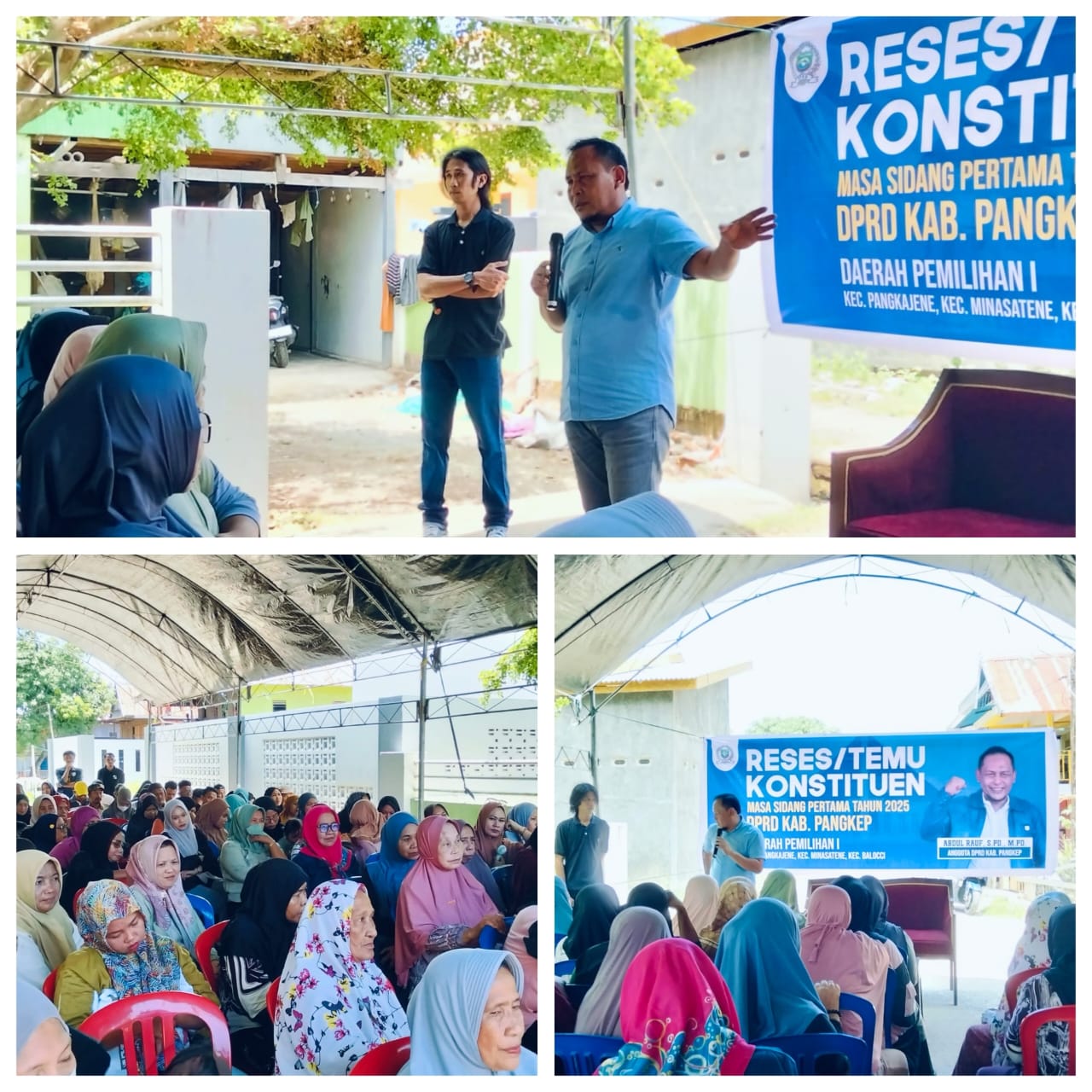 Kelaster.com PANGKEP — Anggota DPRD Kabupaten Pangkajene dan Kepulauan (Pangkep) dari Fraksi Partai Amanat Nasional (PAN), Abd Rauf, S.Pd., M.Pd., yang juga merupakan anggota Komisi I, melaksanakan kegiatan reses dan temu konstituen bersama masyarakat dan pemerintah desa. Dalam kegiatan tersebut, ia didampingi oleh staf DPRD, Fitridiani.