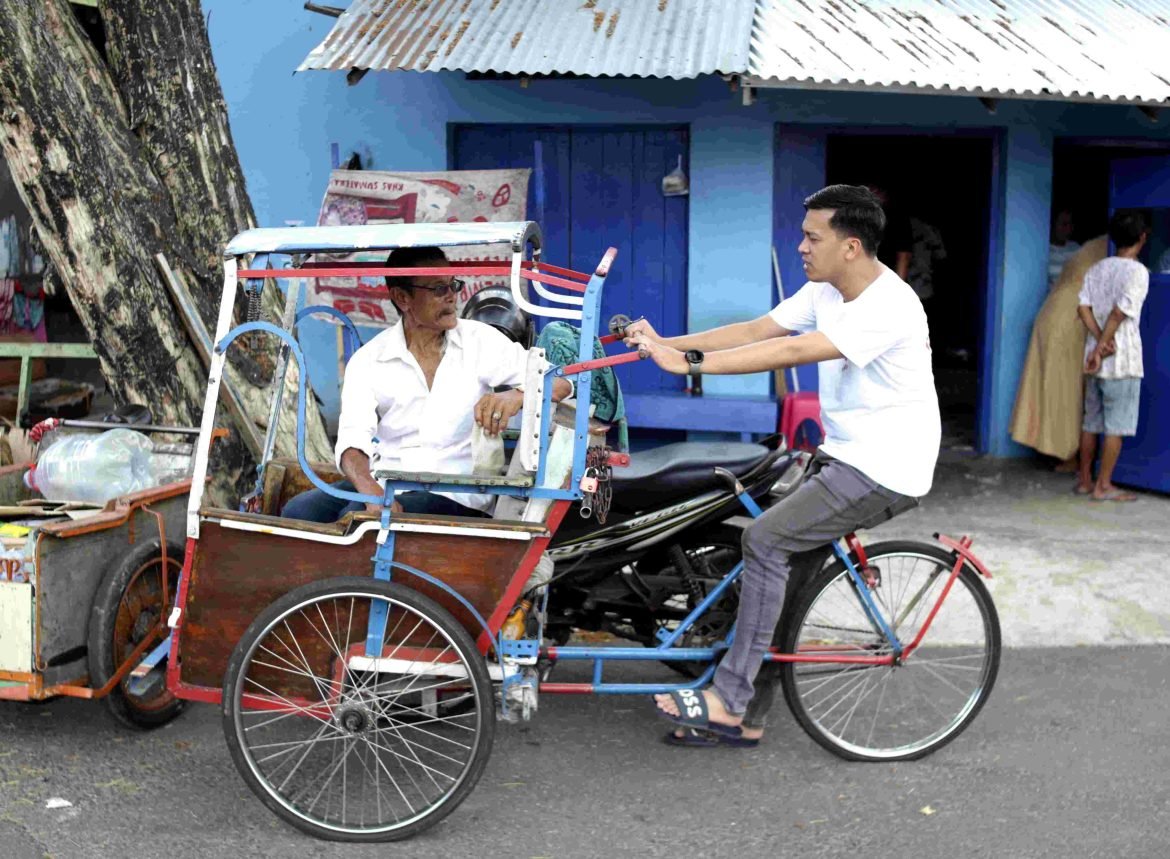 Dalam momen yang penuh kehangatan tersebut, Andi Nurhaldin terlihat berbincang santai dengan tukang becak yang sudah lanjut usia tersebut.