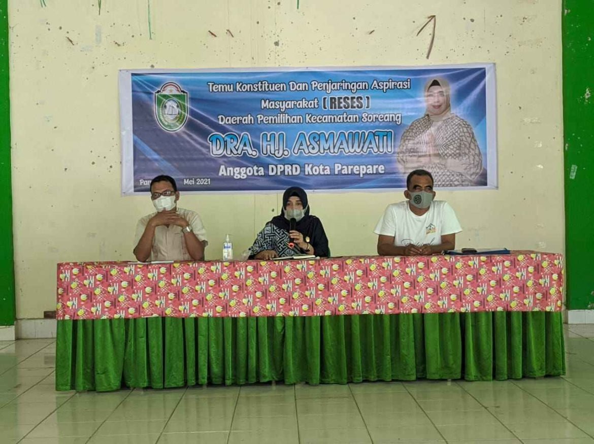 KELASTER.COM, PAREPARE — Legislator Nasdem Parepare Asmawati menjaring aspirasi warga atau reses. Kegiatan itu digelar di Gedung Aisiyah, Sabtu, (8/5/2021).
