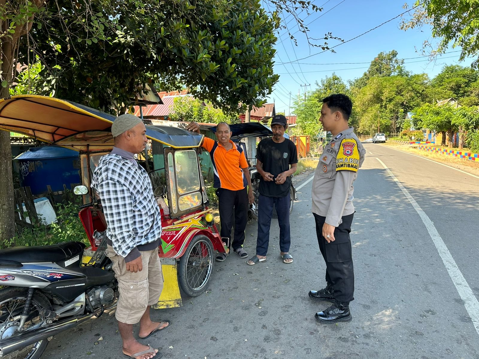 Bhabinkamtibmas Polsek Bungoro melaksanakan patroli di komunitas tukang bentor dan menyampaikan himbauan Kamtibmas*
