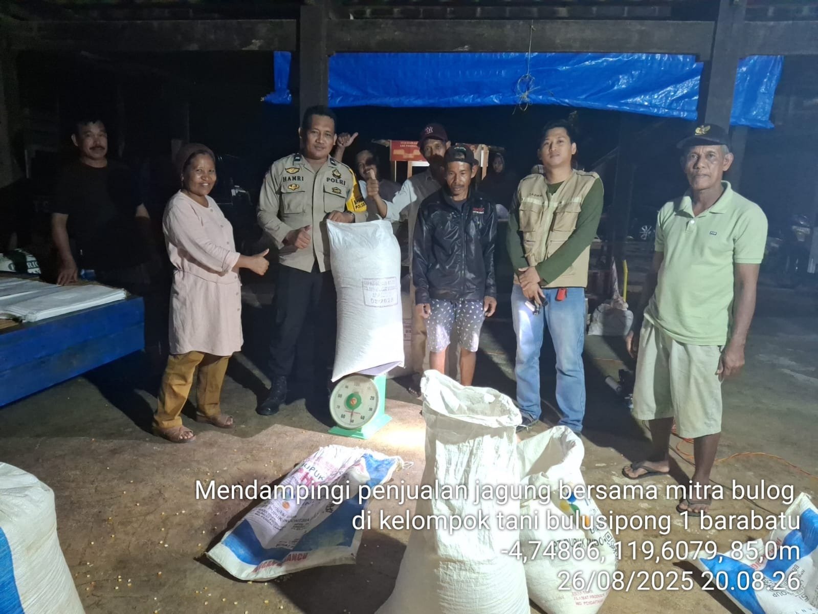 Kelaster.com Labakkang – Hari Selasa tanggal 26 Agustus 2025 pukul 19.30 wita, Bhabinkamtibmas Aipda Hamri bersama PPL Desa Bara batu Muh. Yassir, SP, M. Si mendampingi Mitra Bulog (H. Ernawati) terkait pembelian jagung petani di Kp. Bulu sipong, Desa Bara batu, Kec. Labakkang, Kab. Pangkep
