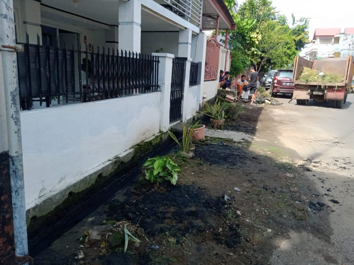 Mohon dapat membantu kami mengeruk drainase buntu yang mengakibatkan tergenangnya air di dalam rumah warga. Biasanya setelah hujan reda air pun ikut surut namun karena drainase tersumbat total maka air tergenang di rumah-rumah warga,” pinta Lurah Kampung Pisang, Darlan.