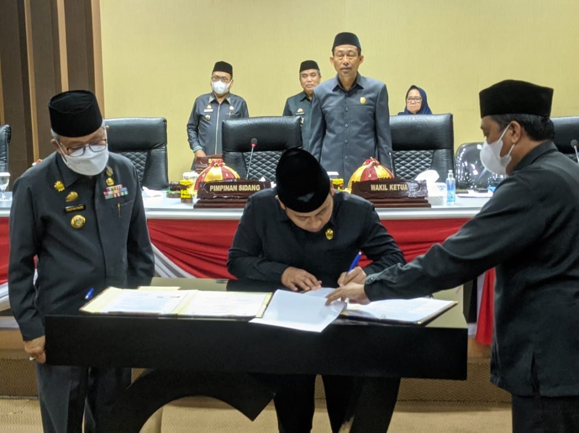 Empat Perda dimaksud masing-masing Perda APBD 2023, Perda Pencegahan, pemberantasan, dan Peredaran Gelap Narkotika dan Prekursor Narkotika, Perda Penyelenggaraan Bangunan Gedung, dan Perda Ketahanan Pangan.