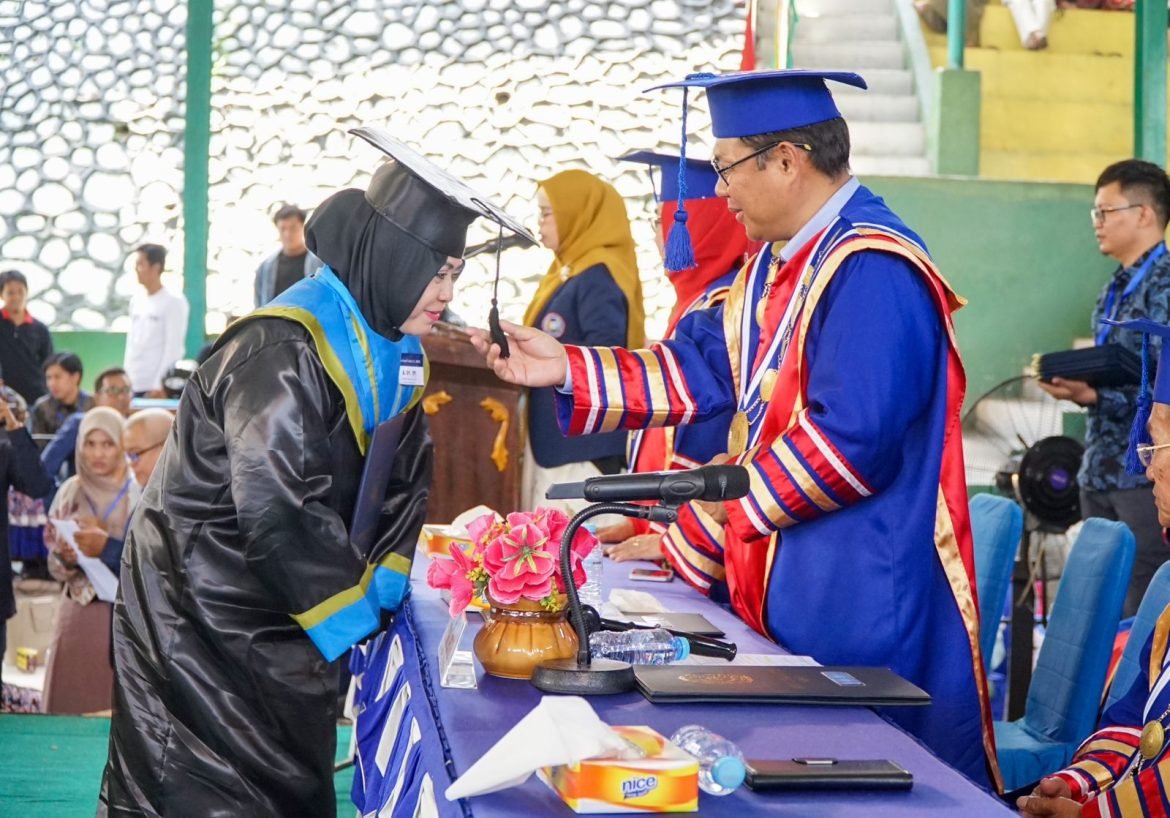Lulusan Doktoral pada Ilmu Pendidikan Agama Islam Program Pascasarjana Umpar ini diwisuda bersama ratusan wisudawan lainnya di Lapangan Tennis, Komplek Rujab Wali Kota Parepare, Sabtu, (14/10/2023).