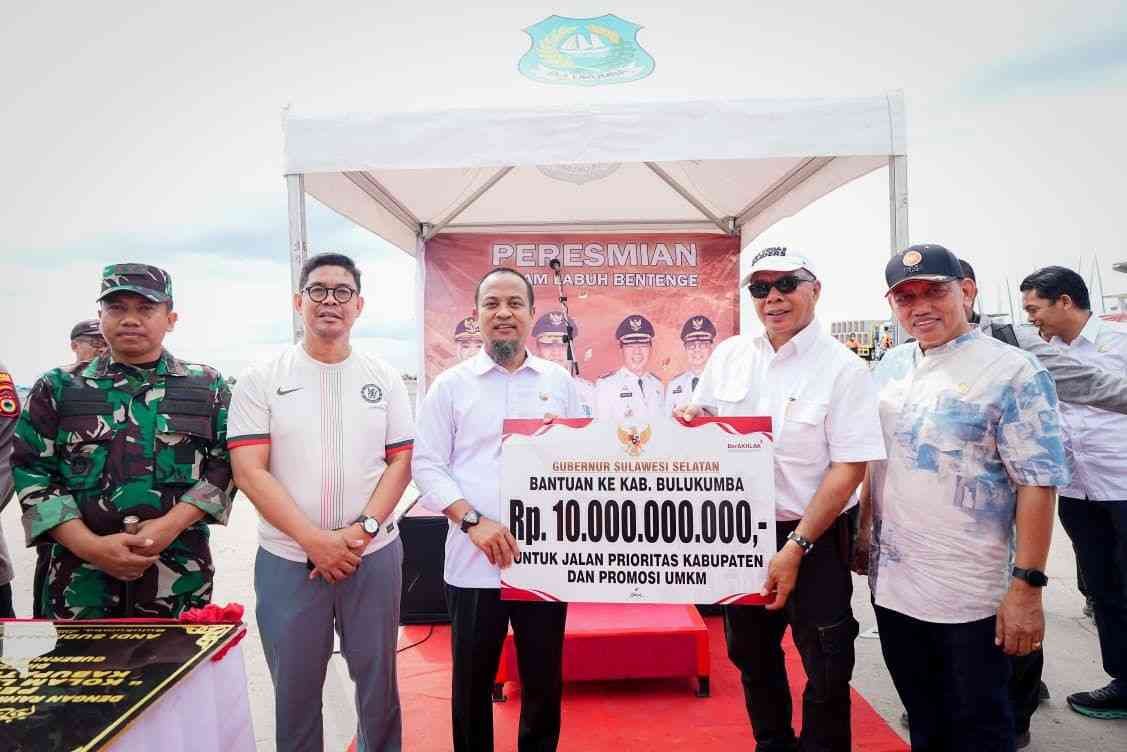 Pada kesempatan itu, Gubernur juga menyerahkan bantuan keuangan sebesar Rp10 miliar kepada Pemerintah Kabupaten Bulukumba. Bantuan tersebut dialokasikan untuk rehabilitasi jalan menuju potensi wisata serta program prioritas pembangunan daerah.