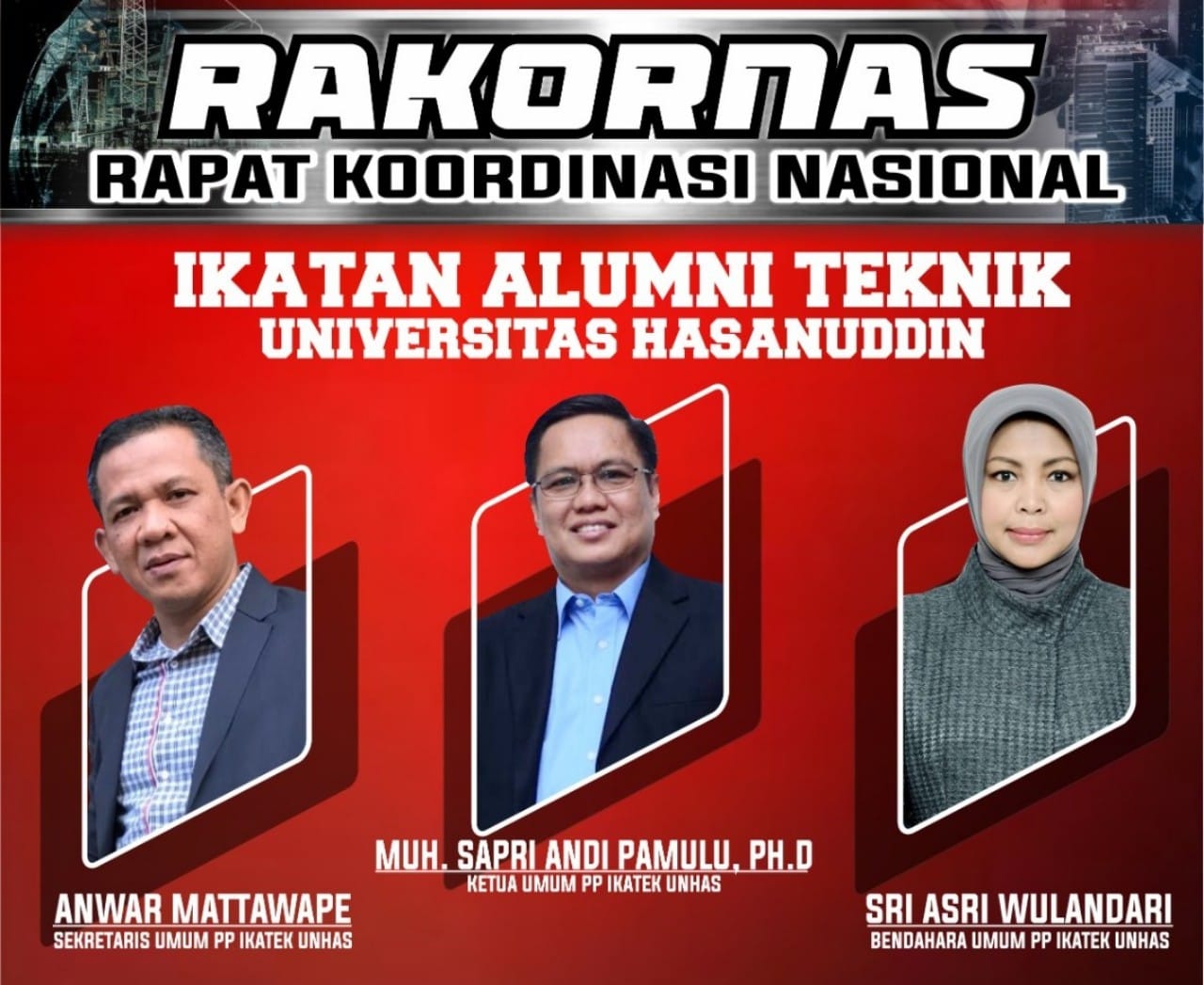 KELASTER.COM,MAKASSAR – Ikatan Alumni Teknik Universitas Hasanuddin (IKA Teknik Unhas) akan menggelar Rapat Koordinasi Nasional (Rakornas) 2025 pada 23-25 Agustus 2025 dan Musyawarah Besar (Mubes) Badan Otonom Forum Alumni Muda IKATEK Unhas (FORMIKA 09) pada 21 Agustus 2025.