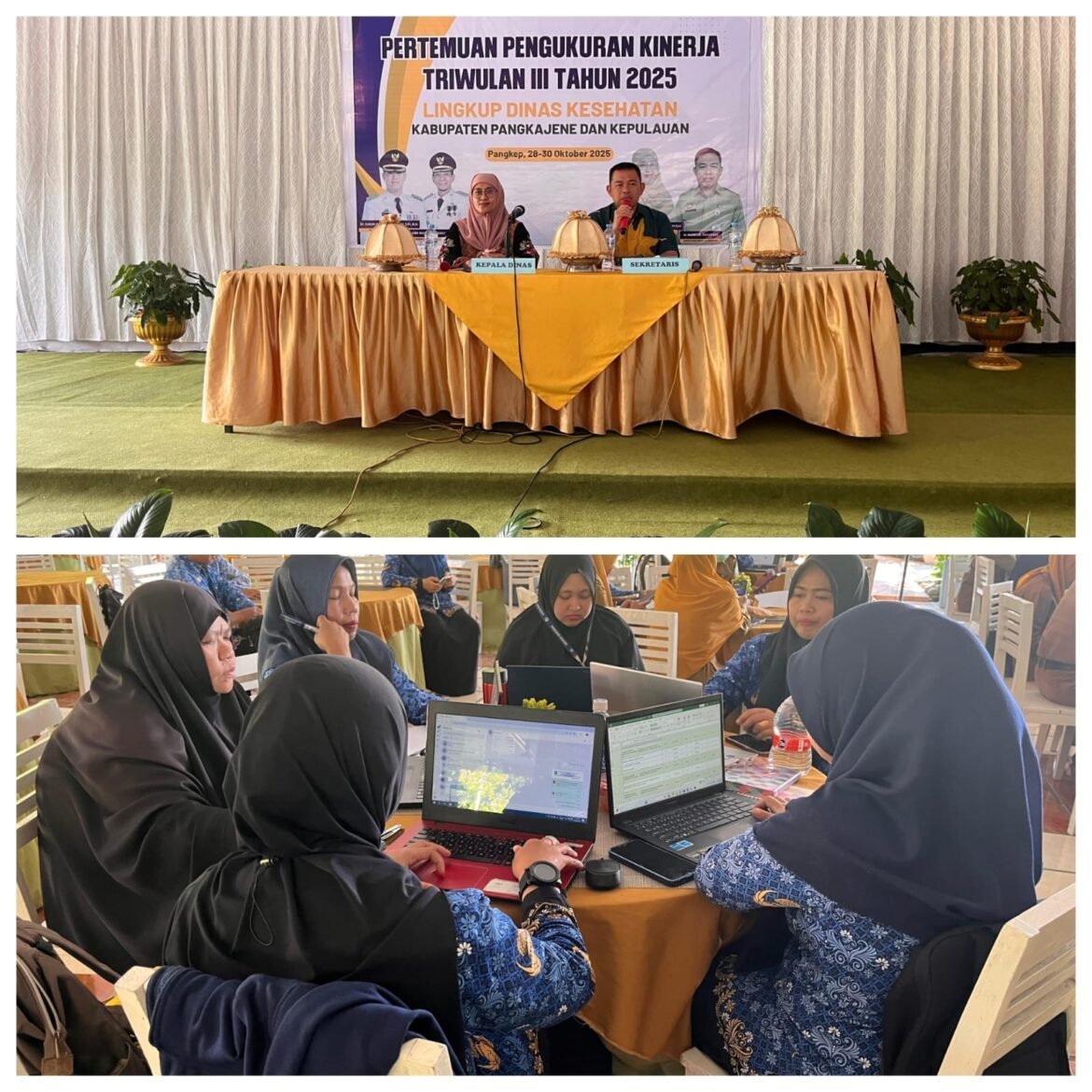 Kelaster.com Pangkep – Kepala Dinas Kesehatan Kabupaten Pangkajene dan kepulauan menghadiri Pertemuan pengukuran kinerja triwulan III tahun 2025 hari ketiga yang berlangsung di Baruga Dewakang Jl Andi Mappe (poros Mksr – Pare) Kelurahan Samalewa kecamatan Bungoro pada Kamis 30 Oktober 2025.