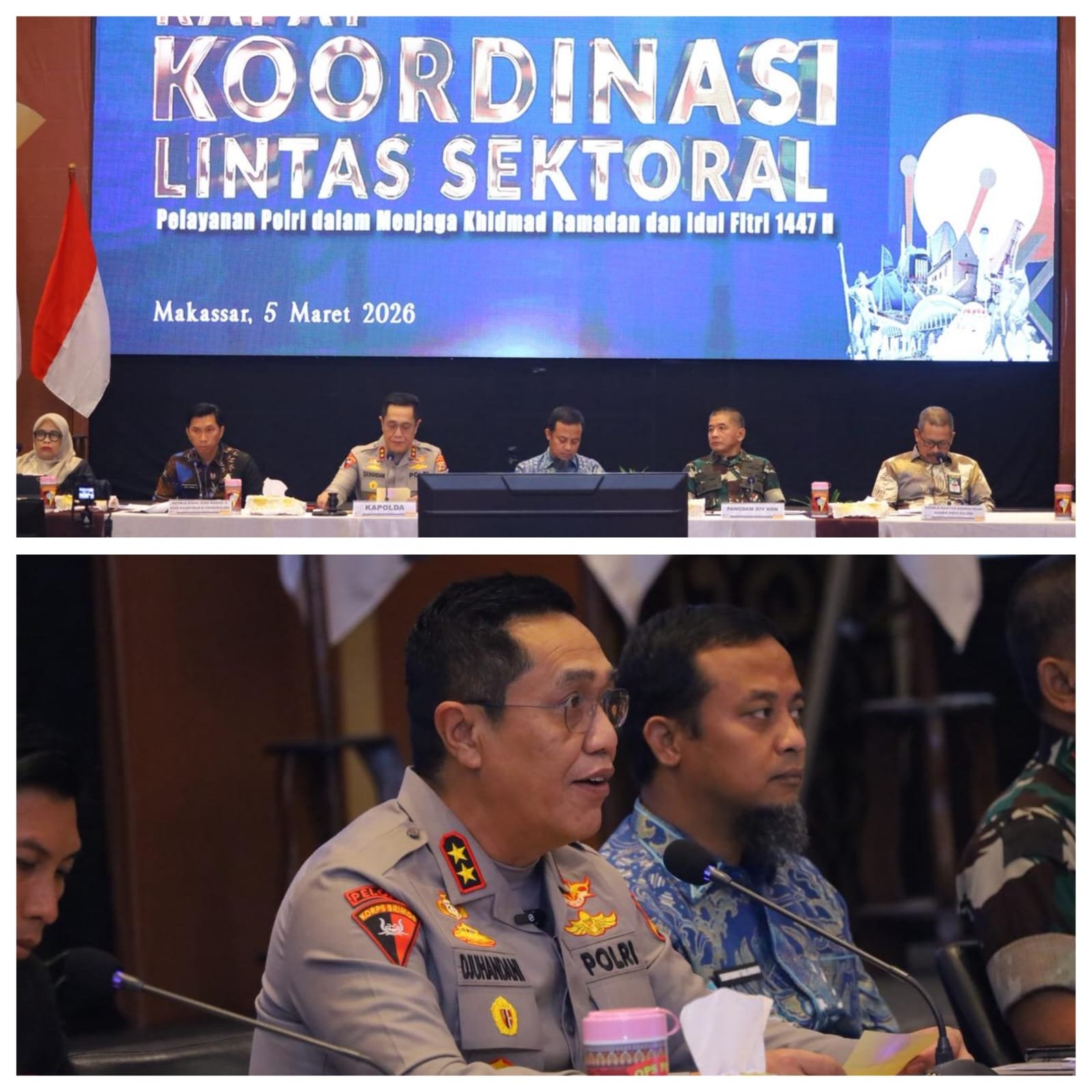 Kelaster.com Makassar -.Kapolda Sulawesi Selatan Irjen Pol. Djuhandhani Rahardjo Puro, S.H., M.H., membuka langsung kegiatan Rapat Koordinasi (Rakor) Lintas Sektoral Tahun 2026 dalam rangka kesiapan Operasi Kepolisian Terpusat dengan sandi “Ketupat-2026” untuk pengamanan Hari Raya Idul Fitri 1447 Hijriah. Kegiatan tersebut dilaksanakan di Hotel Harper Makassar, Kamis (05/03/2026).