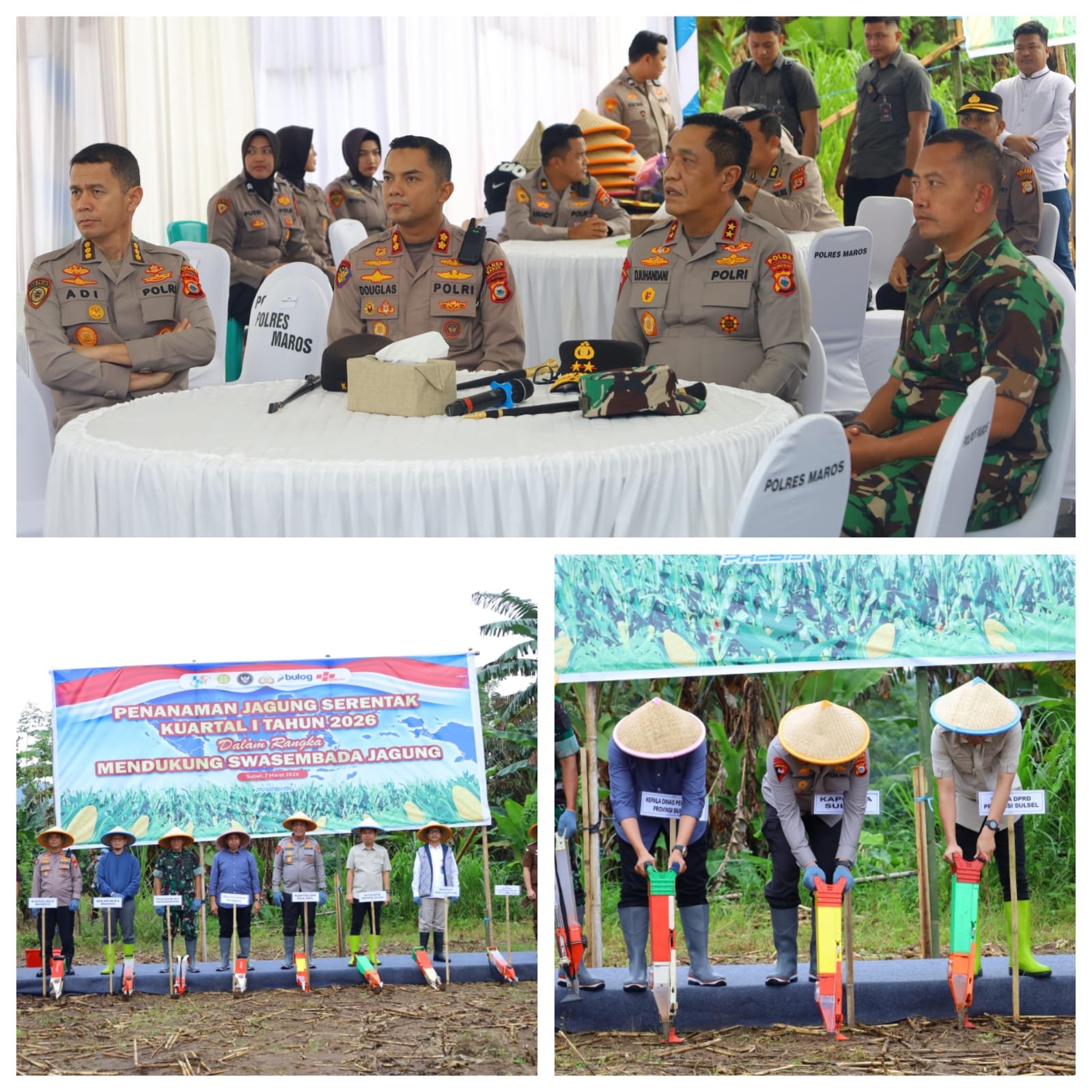 Turut hadir dalam kegiatan tersebut sejumlah pejabat utama Polda Sulsel, di antaranya Karo SDM Polda Sulsel Kombes Pol. Adi Ferdian Saputra, Kabid Humas Polda Sulsel Kombes Pol. Didik Supranoto, serta Kabid Propam Polda Sulsel Kombes Pol. Zulham Effendy. Selain itu, kegiatan juga dihadiri unsur Forkopimda Kabupaten Maros dan para pemangku kepentingan di sektor pertanian.