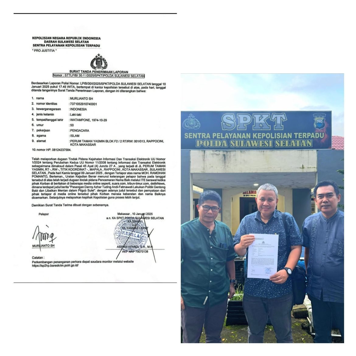 MAKASSAR–Tim Hukum dan Advokasi Andalan Hati yang diwakili oleh Ketua Murlianto dan Wakil Ketua Syamsuddin Nur melaporkan Mohammad Ramdhan Pomanto ke polisi terkai fitnah dan pencemaran nama baik melalui media online.
