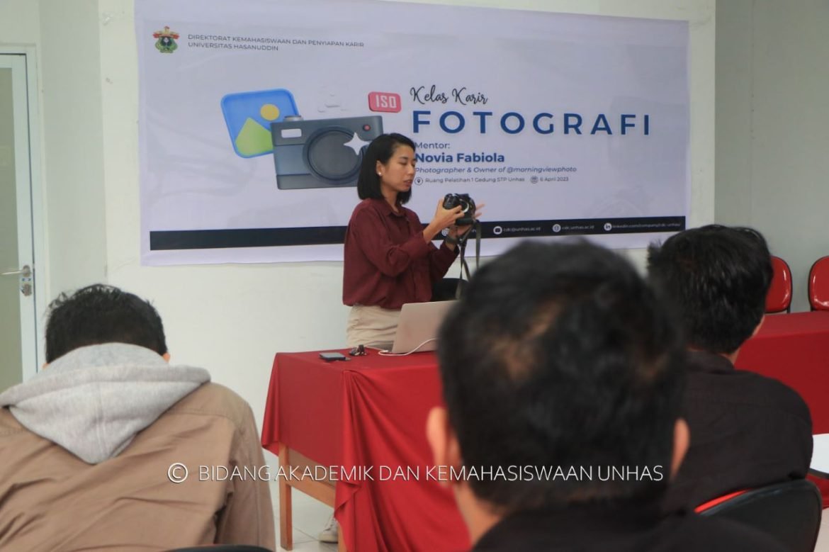 CDC Unhas menghadirkan mentor Novia Fabiola, alumni Fakultas Ekonomi Unhas dan pemilik Wedding Photography Morning View Photo yang berbasis di Makassar dan Jakarta.