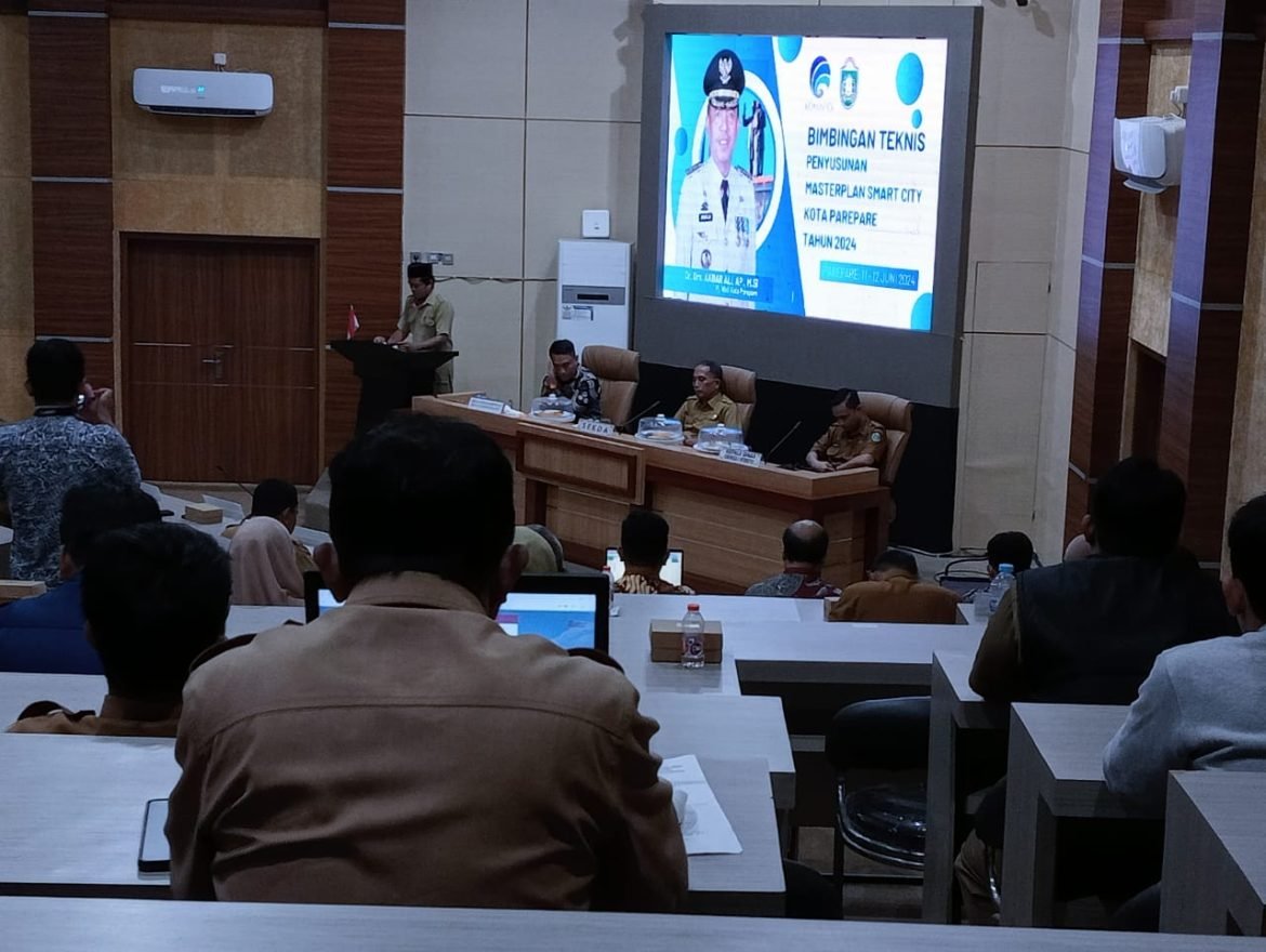 Parepare – Pemerintah Kota Parepare, melalui Dinas Komunikasi dan Informatika Kota Parepare, menggelar Bimbingan Tekhnis Pertama Penyusunan Master Plan Smart City Kota Parepare, tahun 2024 yang digelar di Ruang Pola Kantor Wali Kota Parepare, Selasa 11 Juni 2024.