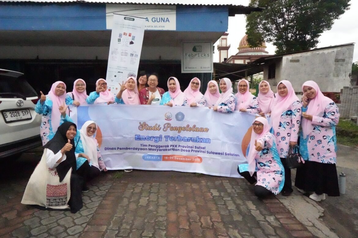 Kelaster.com JAKARTA — 18 Desember 2025, Pengurus Tim Penggerak Pemberdayaan dan Kesejahteraan Keluarga (TP PKK) Provinsi Sulawesi Selatan melakukan kunjungan studi tiru ke Rebricks Indonesia yang berlokasi di Jalan Ciputat Raya, Jakarta Selatan, dalam rangka mempelajari pengelolaan limbah plastik berbasis energi terbarukan yang menghasilkan produk bernilai ekonomi.