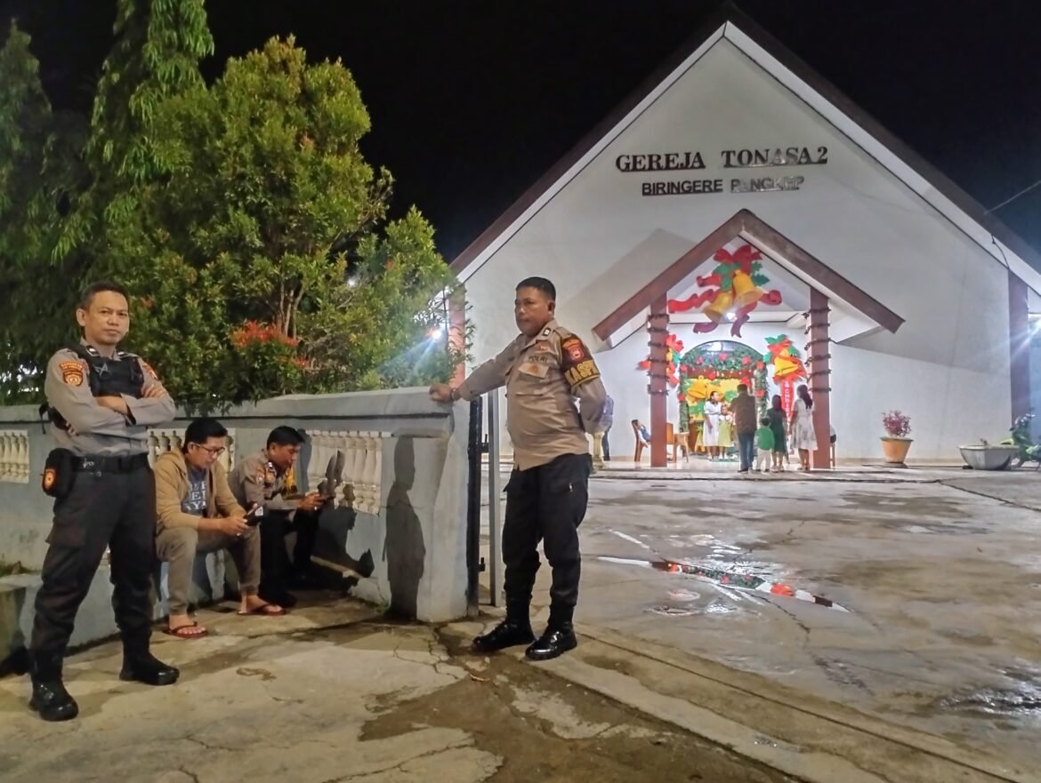 Kelaster.com PANGKEP – Dalam rangka memberikan rasa aman dan nyaman kepada umat Nasrani menjelang perayaan Natal dan Tahun Baru 2026, personel Polsek Bungoro melaksanakan pengamanan ibadah malam di Gereja Oikumene Tonasa II, Jalan Anoa No. 39, Desa Biring Ere, Kecamatan Bungoro, Kabupaten Pangkep, pada Selasa malam (16/12/2025).