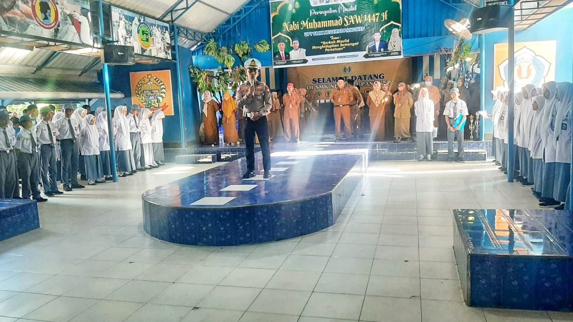 Kelaster.com Pangkep – Dalam rangka program Police Goes to School, Panit 1 Unit Lantas Polsek Bungoro IPDA Mat Faesal M, S.H bertindak sebagai pengambil apel pagi di SMKN 2 Pangkep, Kelurahan Samalewa, Kecamatan Bungoro, Kabupaten Pangkep pada Senin (22/09/25). Kegiatan ini dilaksanakan sebagai upaya meningkatkan kesadaran tertib berlalu lintas di kalangan pelajar.