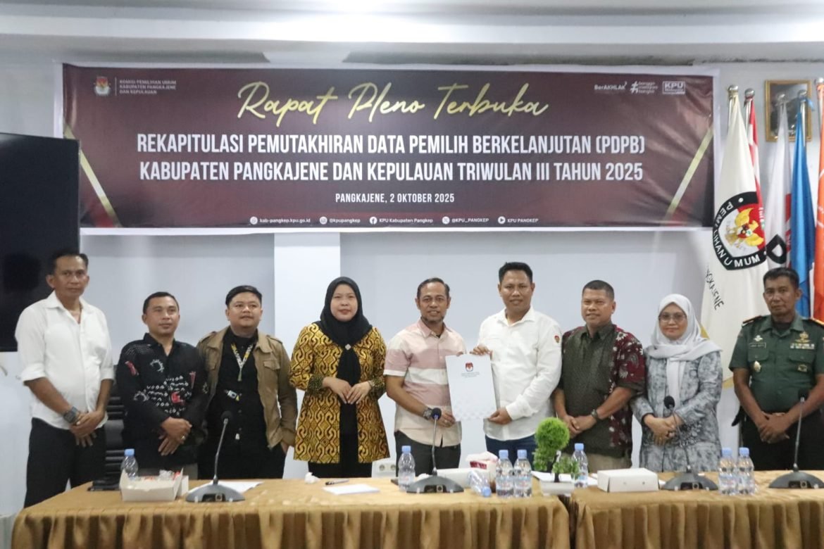 Kelaster.com Pangkep – Badan Pengawas Pemilu (Bawaslu) Kabupaten Pangkajene dan Kepulauan menghadiri Rapat Pleno Terbuka Rekapitulasi Pemutakhiran Data Pemilih Berkelanjutan (PDPB) Kabupaten Pangkep Triwulan II Tahun 2025 yang berlangsung di Aula lantai 2 Kantor KPU Pangkep, Jl. Dg. Bonto, Pangkajene, Kamis (02/10/2025).