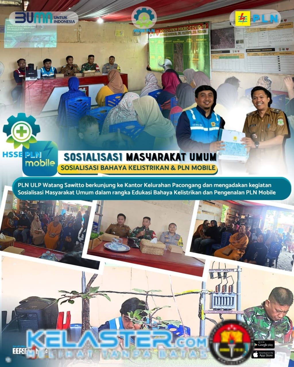 Kelaster.com PINRANG — PT PLN (Persero) ULP Watang Sawitto terus menunjukkan komitmennya dalam meningkatkan kesadaran masyarakat terkait keselamatan ketenagalistrikan dan penggunaan energi yang bijak. Kali ini, melalui kegiatan sosialisasi di Kelurahan Pacongang, Kecamatan Paleteang, Kabupaten Pinrang, PLN menggandeng sejumlah tokoh masyarakat untuk memperluas pemahaman tentang bahaya listrik di lingkungan sekitar.