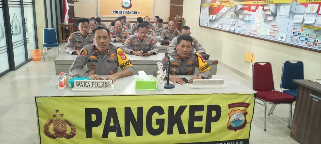 Kegiatan Binrohtal ini dipimpin langsung oleh Wakapolres Pangkep, Kompol Sugeng Suprijanto, S.Pd., M.H., didampingi oleh Kabag Ops Kompol Nasri, S.Sos., serta diikuti oleh para Pejabat Utama (PJU) dan personel Polres Pangkep.