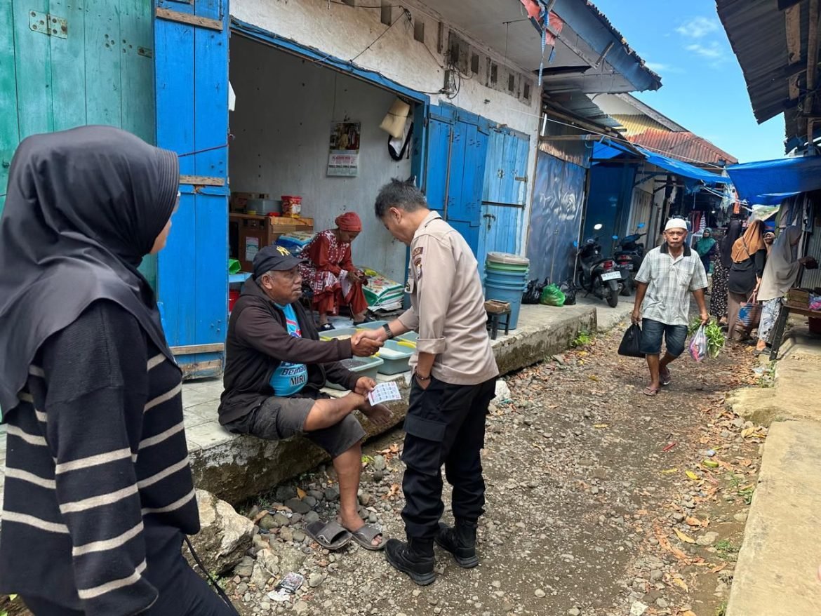 Dalam patroli tersebut, personel menyambangi sejumlah pedagang dan pengunjung pasar. Aiptu Naharuddin juga berkesempatan berdialog langsung dengan salah seorang pedagang. Melalui obrolan santai tersebut, ia menyampaikan pesan-pesan kamtibmas sekaligus mempererat kemitraan antara Polri dan masyarakat.