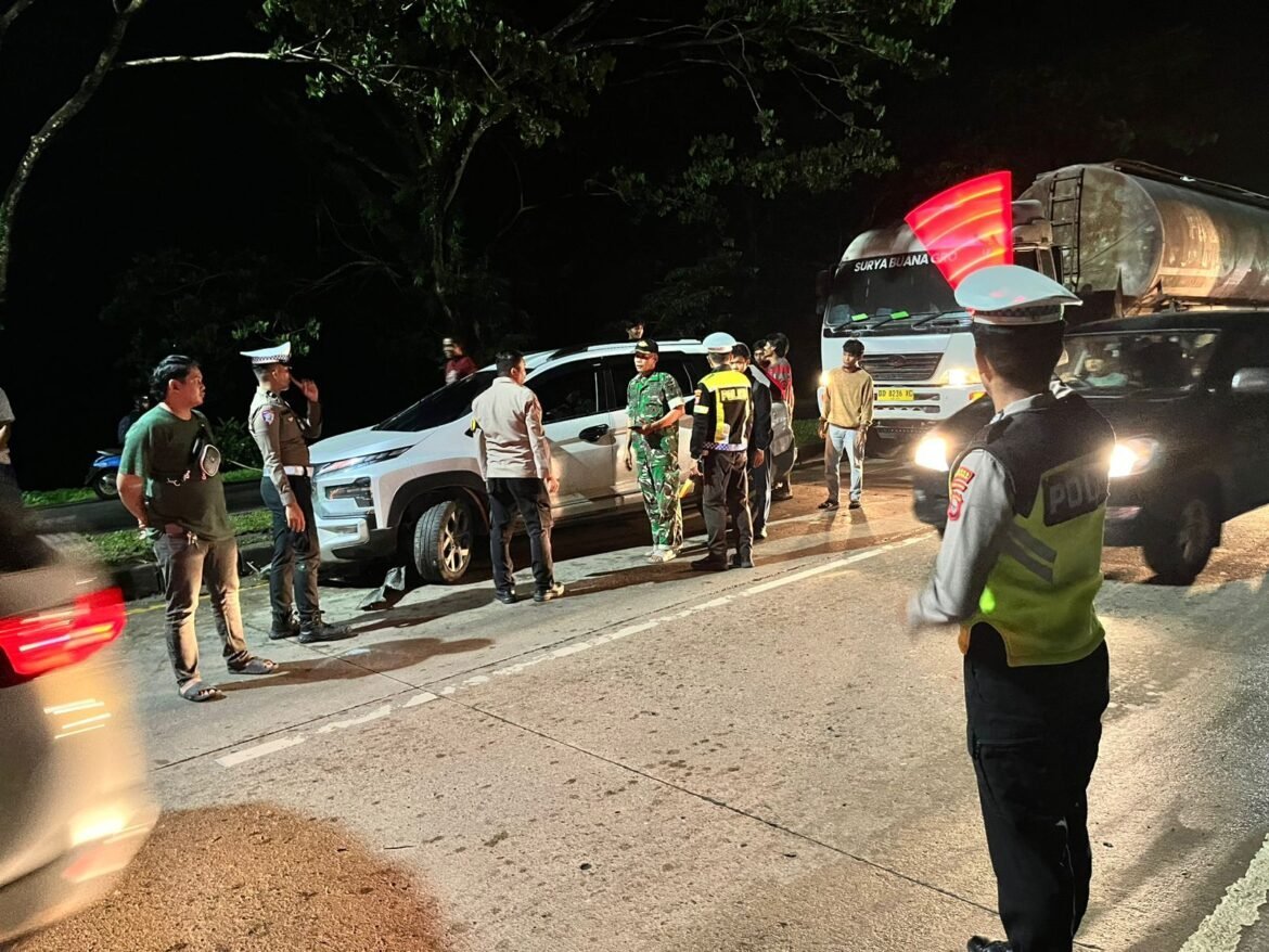 Kelaster.com Pangkep – Personel Pos Pengamanan (Pos Pam) Operasi Lilin 2025 Segeri bergerak cepat mendatangi Tempat Kejadian Perkara (TKP) kecelakaan lalu lintas out of control yang terjadi di Kampung Maroangin, Kecamatan Ma’rang, Kabupaten Pangkep, pada malam hari.