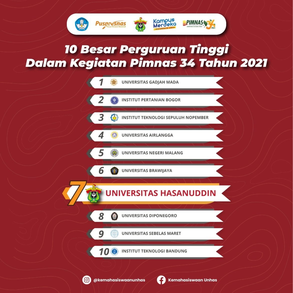Wakil Rektor Bidang Kemahasiswaan dan Alumni Unhas, Prof. Dr. drg. A. Arsunan, M.Kes menjelaskan bahwa capaian ini sangat membanggakan, karena Unhas berhasil bertahan pada jajaran sepuluh besar dengan jumlah capaian medali yang mengalami peningkatan.