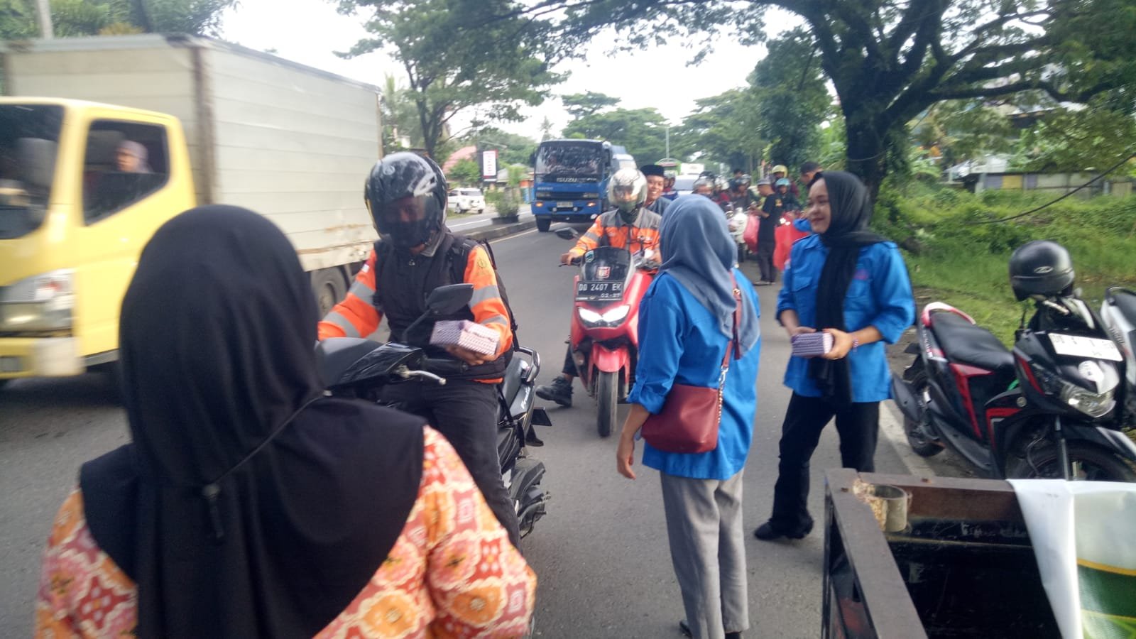 Puluhan paket takjil dibagikan secara gratis kepada masyarakat yang melintas. Warga yang menerima takjil tampak antusias dan mengapresiasi kegiatan sosial yang dilakukan oleh organisasi media tersebut.