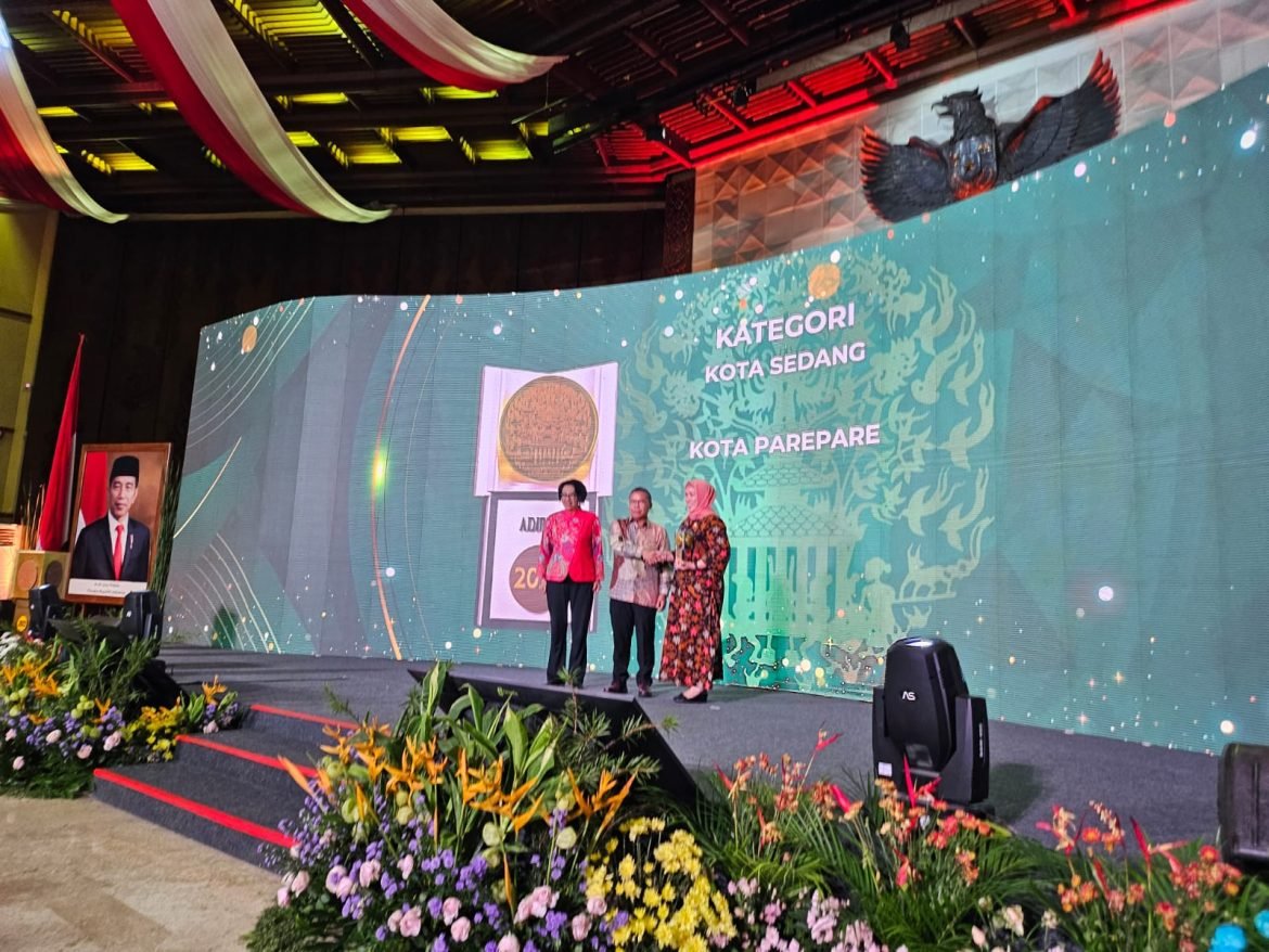 Piala anugerah Adipura itu diserahkan Wakil Menteri Lingkungan Hidup dan Kehutanan (LHK) RI, Alue Dohong. Kepala Dinas Lingkungan Hidup (DLH) Parepare Susianna mewakil Pj Wali Kota Akbar Ali menerima penghargaan Adipura di Gedung Manggala Wanabakti KLHK Jakarta, Selasa 5 Maret 2024.