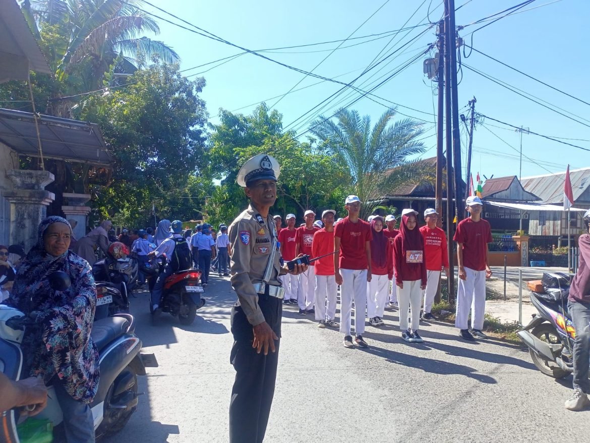 Semarak HUT RI ke-80, Polsek Bungoro Amankan Jalur Gerak Jalan Indah SMKN 1 Pangkep