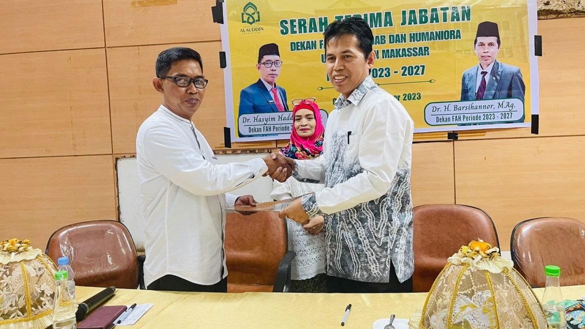 Kelaster-Makassar : Fakultas Adab dan Humaniora (FAH) UIN Alauddin Makassar menyelenggarakan acara Serah Terima Jabatan Dekan FAH UINAM Periode 2023-2027 (Sertijab) yang bertempat di Lecture Theatre lantai 1 FAH UINAM, (senin,04/09/2023)