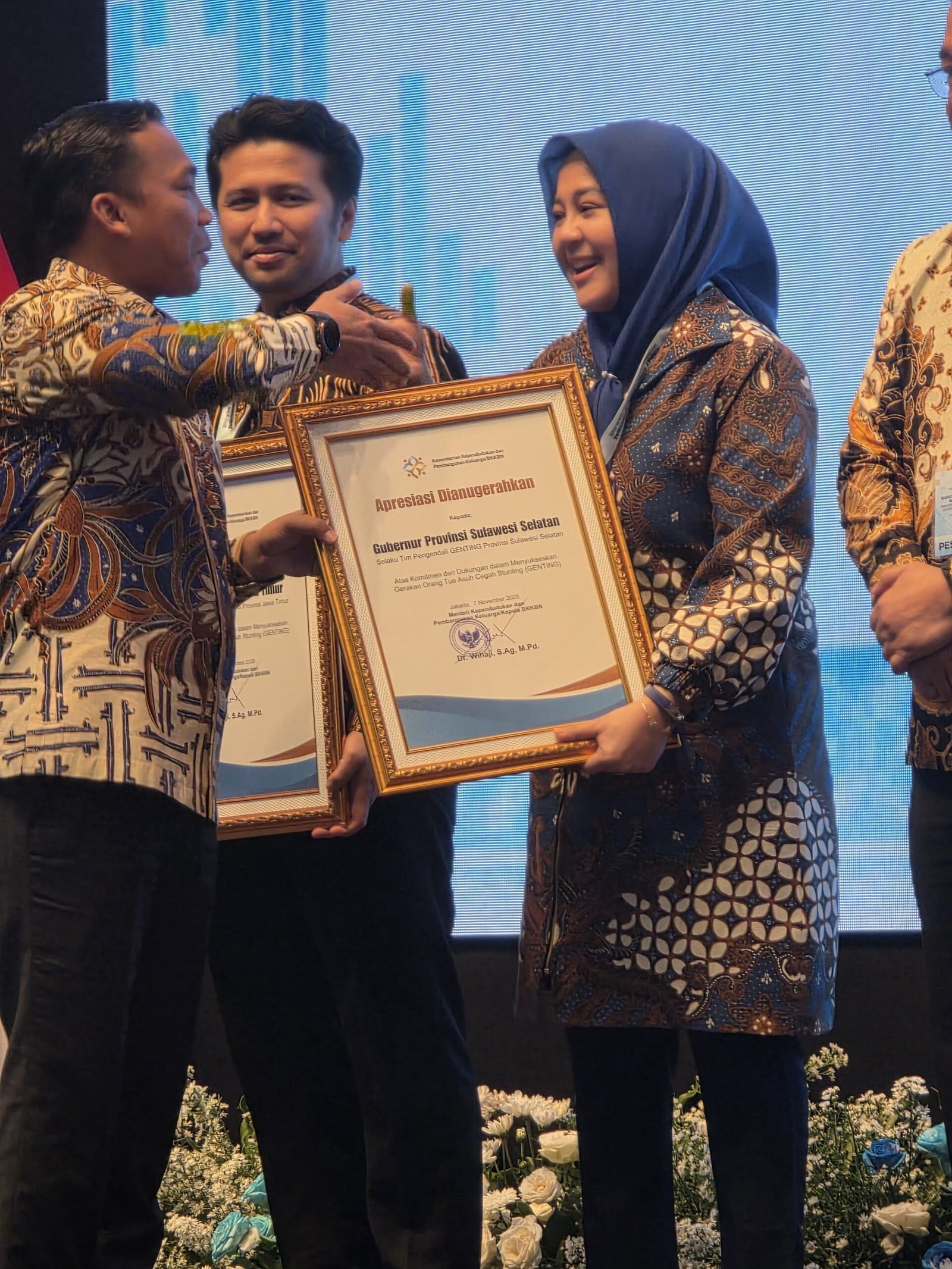 Kelaster.com JAKARTA — Provinsi Sulawesi Selatan kembali menorehkan prestasi gemilang di tingkat nasional. Dalam Rapat Koordinasi Nasional (Rakornas) Percepatan Penurunan Stunting Tahun 2025 yang digelar di Auditorium Jala Leimena, Gedung Adhyatma Kementerian Kesehatan RI, Rabu, 12 November 2025 dan langsung oleh Wakil Presiden RI Gibran Rakabuming Raka.
