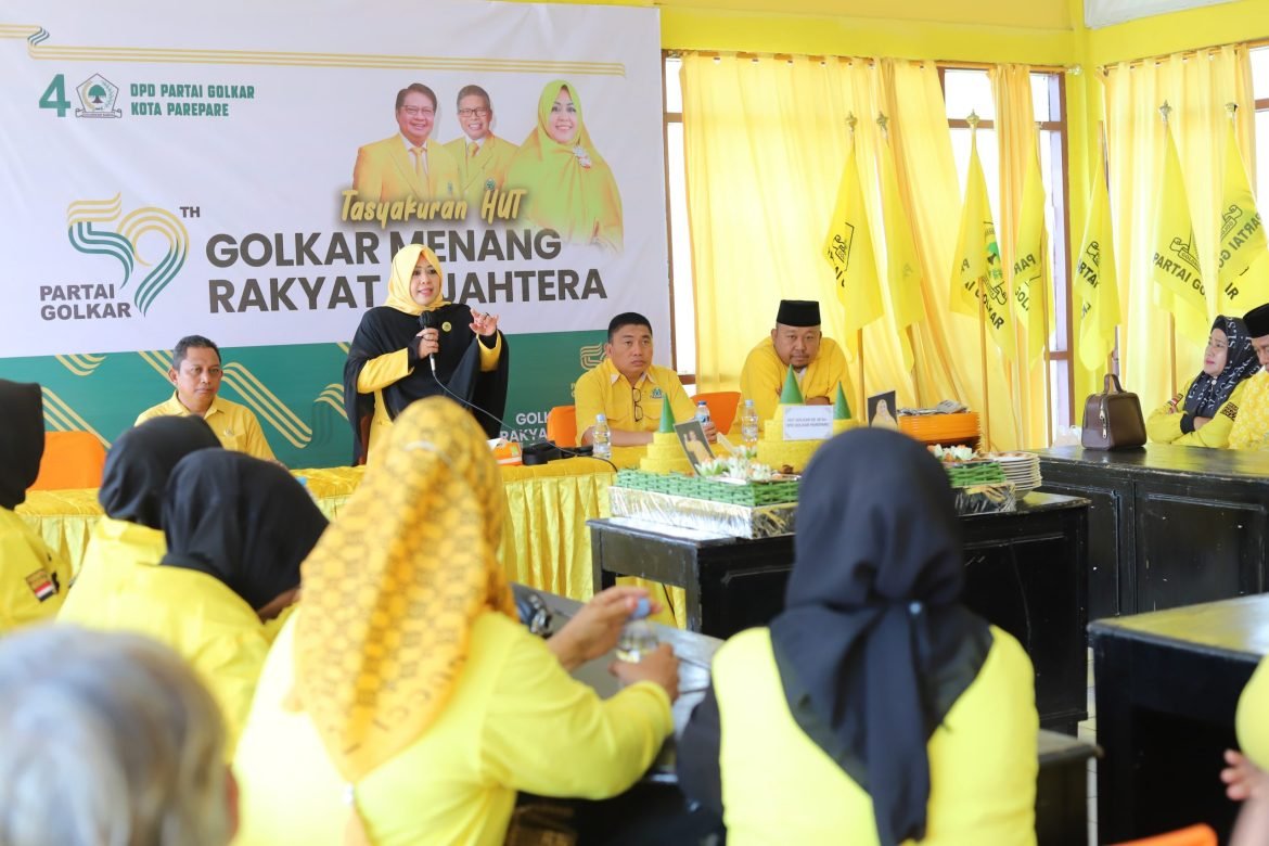 “Di peringatan HUT ke 59 Golkar kali ini, saya ingin bukan hanya Golkar nya yang semakin Jaya, tapi juga diri di semua kader partai Golkar, khususnya kader golkar Parepare harus semakin baik juga, dan semoga Allah memberikan kejayaan pada diri kita semua,” Ucapnya.