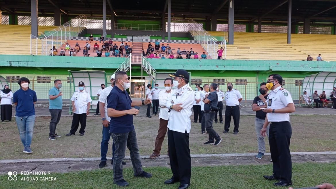 KELASTER.COM, PAREPARE — CEO PSM Munafri Arifuddin bersama Walikota Parepare, Taufan Pawe meninjau Stadion Gelora BJ Habibie.