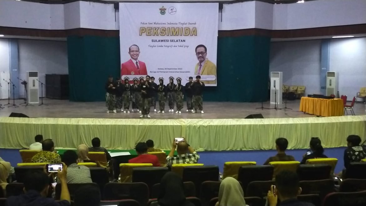 Univeristas Hasanuddin Sebagai bapak angkat tangkai lomba Foto Grafi dan Vokal Group Melalui Bidang Akademik dan Kemahasiswaan laksanakan Pekan Seni Mahasiswa Daerah (PEKSIMIDA) Se-Sulawesi Selatan dari Badan Pembina Seni Mahasiswa Indonesia (BPSMI) Wilayah Sulawesi Selatan di Gedung Baruga AP. Pettrani, (20/09/2022)