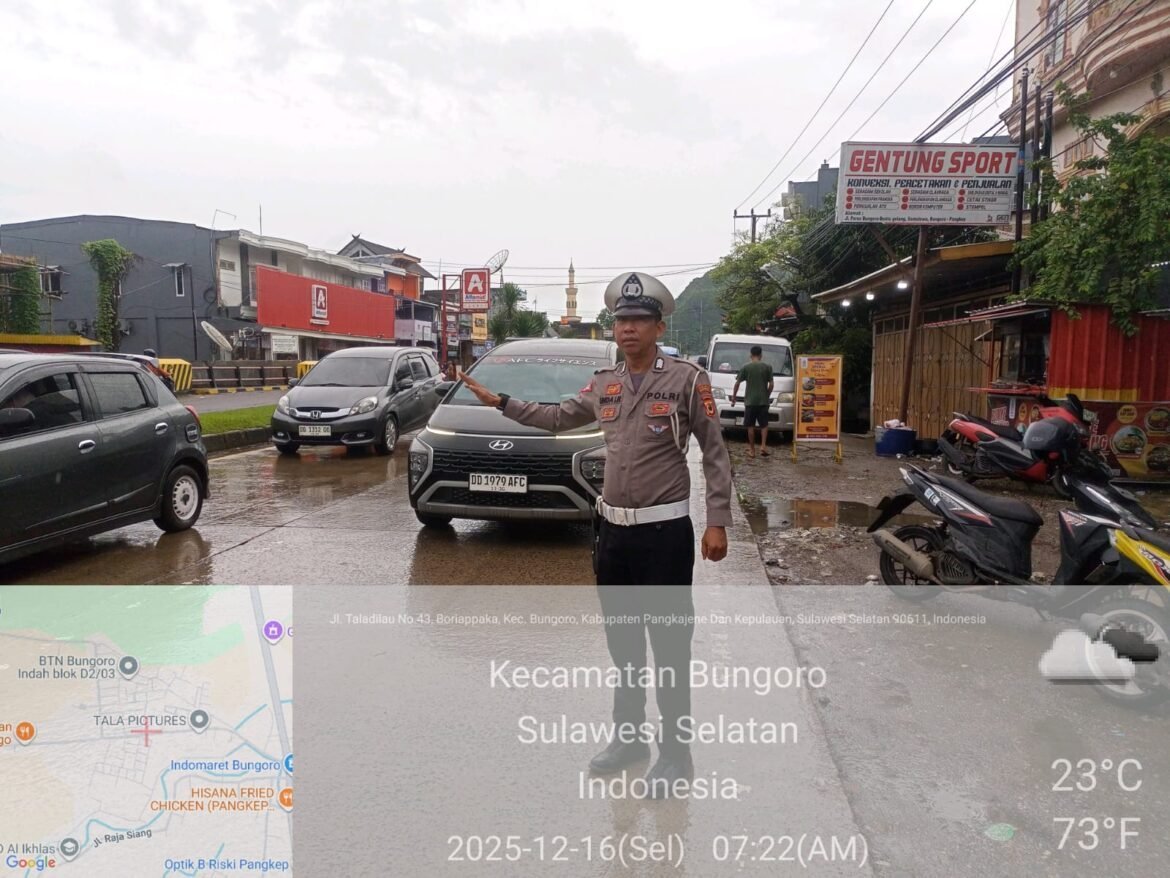 Kelaster.com Pangkep – Dalam rangka meningkatkan kualitas pelayanan kepada masyarakat, Polsek Bungoro secara rutin menggelar Commander Wish pagi dengan melakukan pengaturan lalu lintas, Kegiatan ini dilakukan di bawah kendali Panit Satu Lalu Lintas Polsek Bungoro, Ipda Supardan Pada Selasa,(16/12/25)