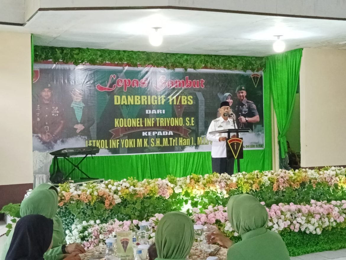 Pangerang mengucapkan terima kasih yang setinggi-tingginya kepada Kolonel Inf. Triyono atas dedikasi, dan pengabdian yang telah diberikan selama menjabat sebagai Danbrigif 11/BS.